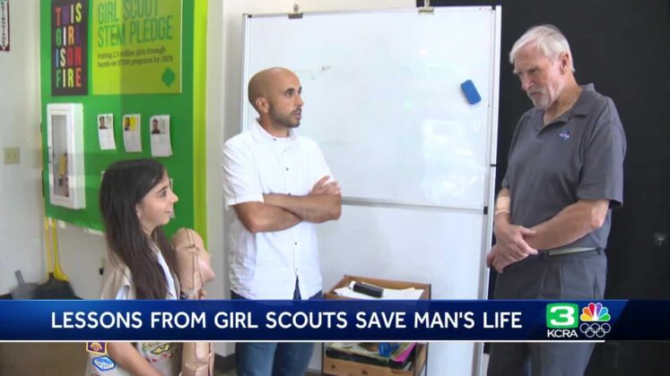 Girl Scouts learn valuable life lessons every year, from how to build a business to saving a life by using CPR.That life lesson helped save a Roseville, California, man.Bob Simonoff, 73, said if it wasn’t for a spunky Girl Scout, he wouldn’t be here today.He met Laila for the first time on Wednesday.”I owe my life to this young lady, child actually, that if it wasn’t for her, I would not have survived,” Simonoff said.He’s talking about Laila Lamdoura, 12, who joined Girl Scouts when she was in kindergarten. From the look of all her earned patches on her vest, she’s been busy learning new skills, like CPR.”I think it’s important for us to learn CPR, just in case of an emergency,” she said. “We have to do something. We don’t want to just let him die.”Girl Scouts Heart of Central California brings in Elizabeth Hughes to teach CPR classes four times a year. She’s with CPR with Heart.”I think it’s empowering more than anything,” Hughes said. Hughes said Anthem Blue Cross donates CPR kits, with dummies to the girls so they can take them home and practice.”She was showing us, her brothers, sister, mom, dad and how to do CPR on the dummy,” said Laila’s father, Ibrahim Lamdoura.He said he learned when you hear the click on the dummy, you know you’re doing the compressions hard enough and correctly.Simonoff and Ibrahim Lamdoura know each other from pick-up soccer games in Roseville, which is in the Sacramento Metropolitan Area. One day during a game, Simonoff collapsed right on the field.”Apparently, I was having a heart attack,” Simonoff said. “He was not breathing,” Ibrahim Lamdoura said. “We realized we got to start CPR immediately.” Lamdoura watched his friend go down. He and another player took turns performing CPR.”I noticed he wasn’t pushing hard enough,” he said, “I just had that moment a few weeks back with Laila and that you need to press hard.”Lamdoura and the other players kept Simonoff alive while the paramedics were on their way.They broke three of his ribs, and Hughes said that’s OK and meant the men were performing CPR the right way. Thanks to his daughter’s desire to help others, Ibrahim Lamadour knew how to save his friend.”If she hadn’t started practicing CPR, her dad wouldn’t have started, and I wouldn’t be here,” Simonoff said.Simonoff is back to playing soccer three times a week instead of five.Laila Lamadour earned even more patches to put on her Girl Scout vest.