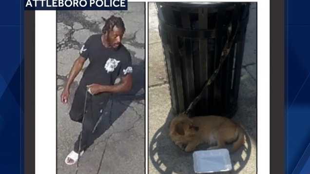 Police in Attleboro, Massachusetts, are seeking a man who, they say, tied a dog to a trash can on Wednesday and left it there in sweltering heat. The incident happened near the USA Food Mart on Park Street, and the small, brown dog was there for more than two hours, police said. The dog was found at about 11:20 a.m., and a video shows a man walking the same dog in the area at about 9 a.m. The dog is now safe with animal control.Anyone who knows the man is asked to contact police at 508-222-1212.