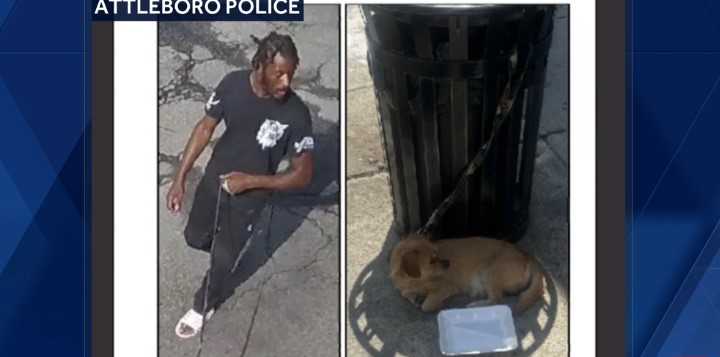 Police in Attleboro, Massachusetts, are seeking a man who, they say, tied a dog to a trash can on Wednesday and left it there in sweltering heat. The incident happened near the USA Food Mart on Park Street, and the small, brown dog was there for more than two hours, police said. The dog was found at about 11:20 a.m., and a video shows a man walking the same dog in the area at about 9 a.m. The dog is now safe with animal control.Anyone who knows the man is asked to contact police at 508-222-1212.