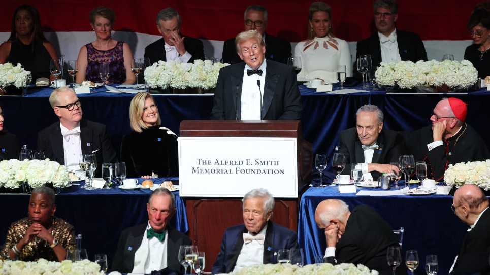 Trump delivers a pointed and at times bitter speech at Al Smith charity dinner