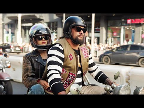Jason Momoa and Daughter Lola Arrive on Motorcyle to The Bikeriders Premiere