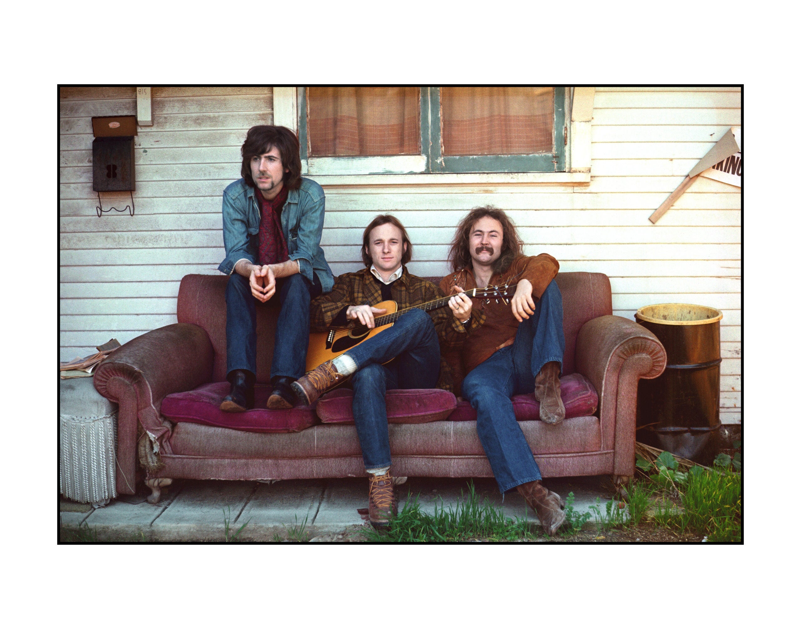 I knew all three. These well-known musicians were going to make a super-group. They needed publicity shots. So we went out with Gary in his ’56 Ford station wagon, hopping out here and there. We found this old house with a couch in front. They just jumped on the couch spontaneously. I took pictures.