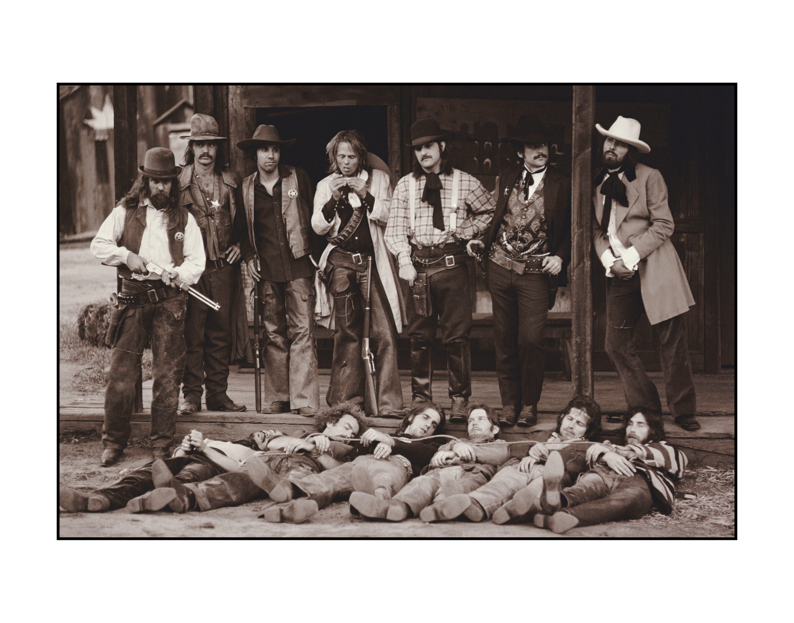 Gary knew this old ghost-town — a Western movie set out in the Santa Monica Mountains, in Agoura. The Eagles spent a day in this derelict town playing cowboys with their friends Jackson Browne and J.D. Souther. We had real guns with movie blanks. They went bang! They started playing cowboys, shooting at each other, grabbing their chests, falling down in the dirt.