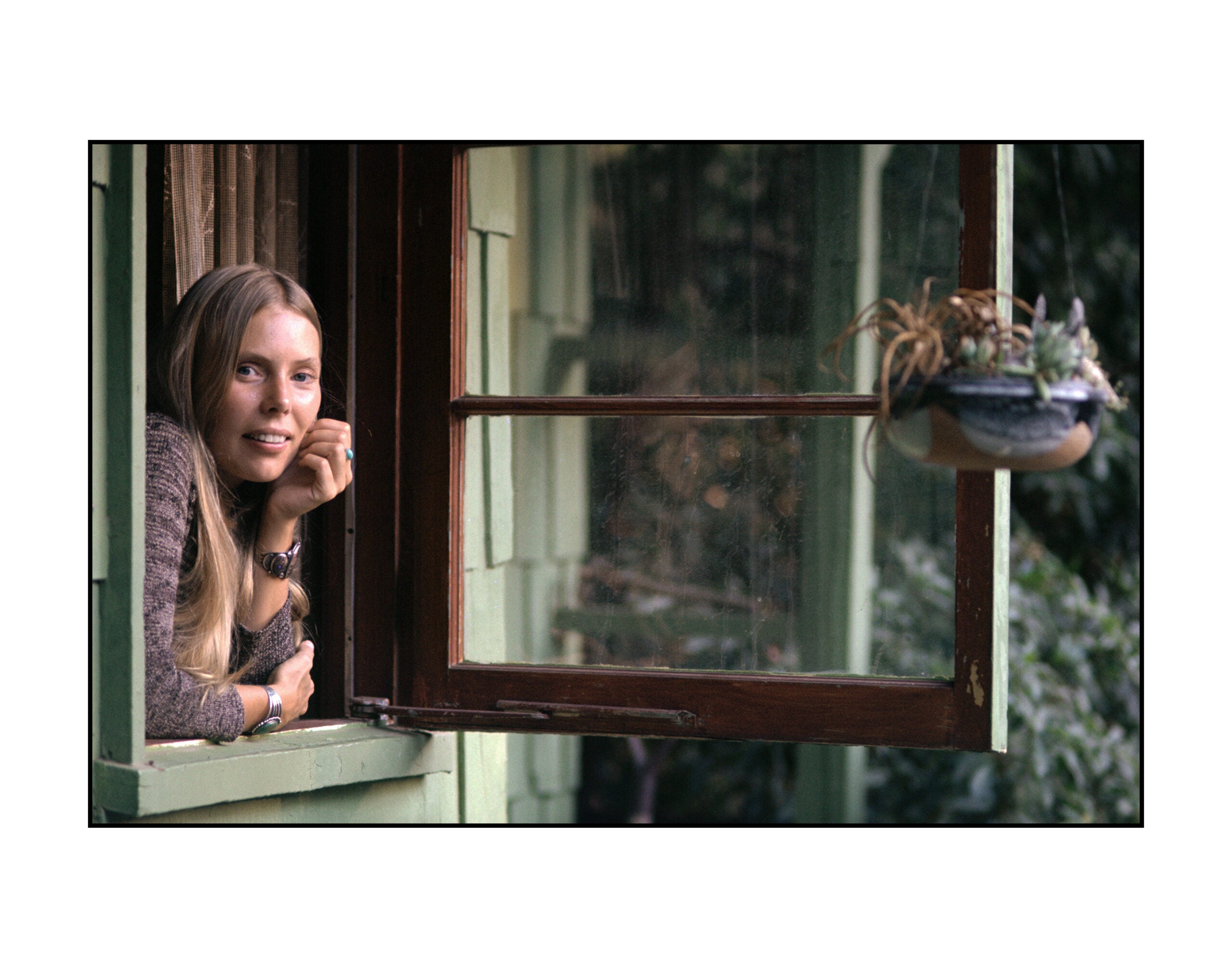 Joni Mitchell lived near me in Laurel Canyon. She needed publicity photos, so we went to her house. We walked up the steps; she was sitting in the front window waiting. Gary started talking to her for five minutes, and I took some pictures. So natural. Nobody even noticed.