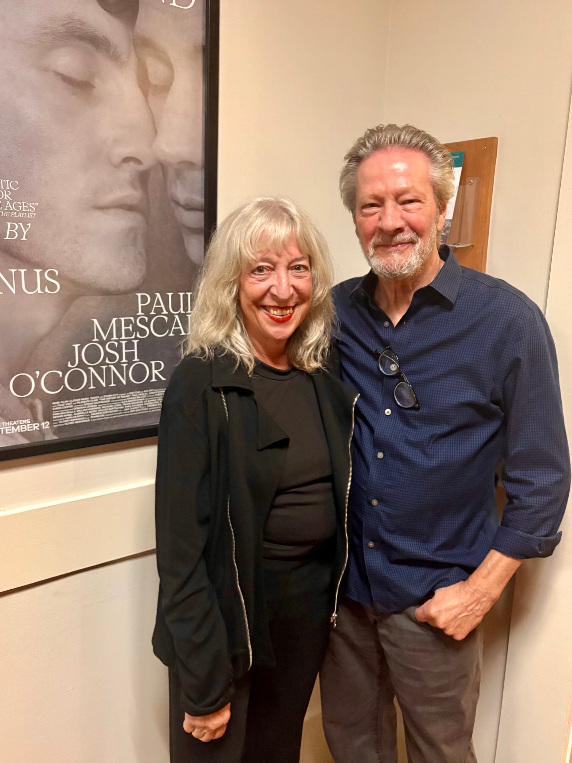 Actor/author Marianne Leone and her husband Chris Cooper pose near a poster of his latest film. Courtesy