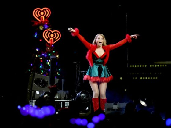 The Kid LAROI, meanwhile, had an actual stage setup, which in this case meant a bare-bones riser that looked good in silhouette. Just like when he played the Jingle Ball back in 2022, the Australian singer had no voice, but this time it wasn’t because he’d wrecked his voice days earlier. A technical glitch left his backing tracks loud and clear but his microphone inaudible. To the audience, at least; he performed as if completely unaware of the situation, working hard with no output. But his vocals popped out two songs in, just in time for him to Whammageddon the crowd with “Last Christmas” and navigate the shifting tempos of “Stay” without losing momentum.