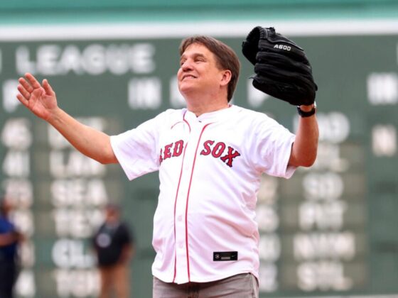 Boston Pops conductor Keith Lockhart, celebrating his 30th year with the orchestra, threw out a ceremonial first pitch at Sunday’s Red Sox game. AP Photo/Mark Stockwell